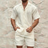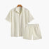 Crafted from soft, breathable cotton with a subtle woven pattern, this outfit features a luxury shirt with buttons and matching shorts including an elastic waistband and side pockets, making this outfit perfect for beach days, getaways, or casual evenings out.