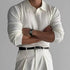 This long sleeve men’s polo is a must-have in your wardrobe. Featuring a collared V-neck, it is detailed with vertical ribbing to elevate your casual look with sumptuous texture. The tailored fit with long sleeves is all about enhancing your physique.